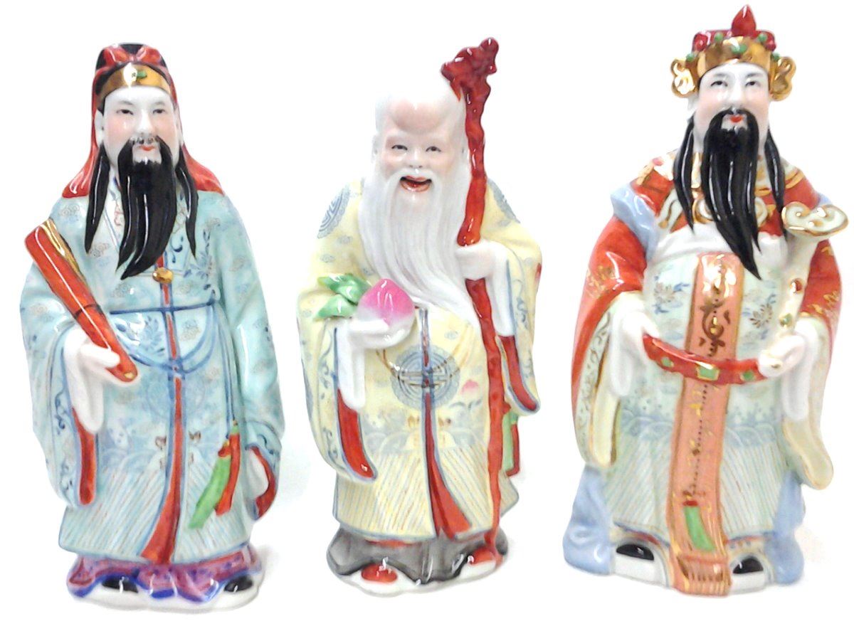 Antique Chinese Porcelain Statue Prosperity Fu Status Lu And Longevity Shou Hallmarked 14